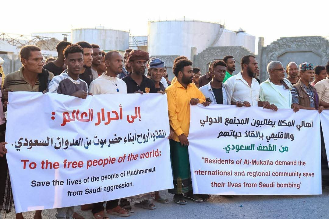 صوت عدن/ المكلا / إعلام المجلس الإنتقالي :شهدت مدينة المكلا، عصر اليوم الثلاثاء، وقفة احتجاجية شارك فيها أهالي المكلا، تنديداً بالغارة الجوية التي استهدفت ميناء المدينة فجر اليوم الثلاثاء، في تصعيد خ ...