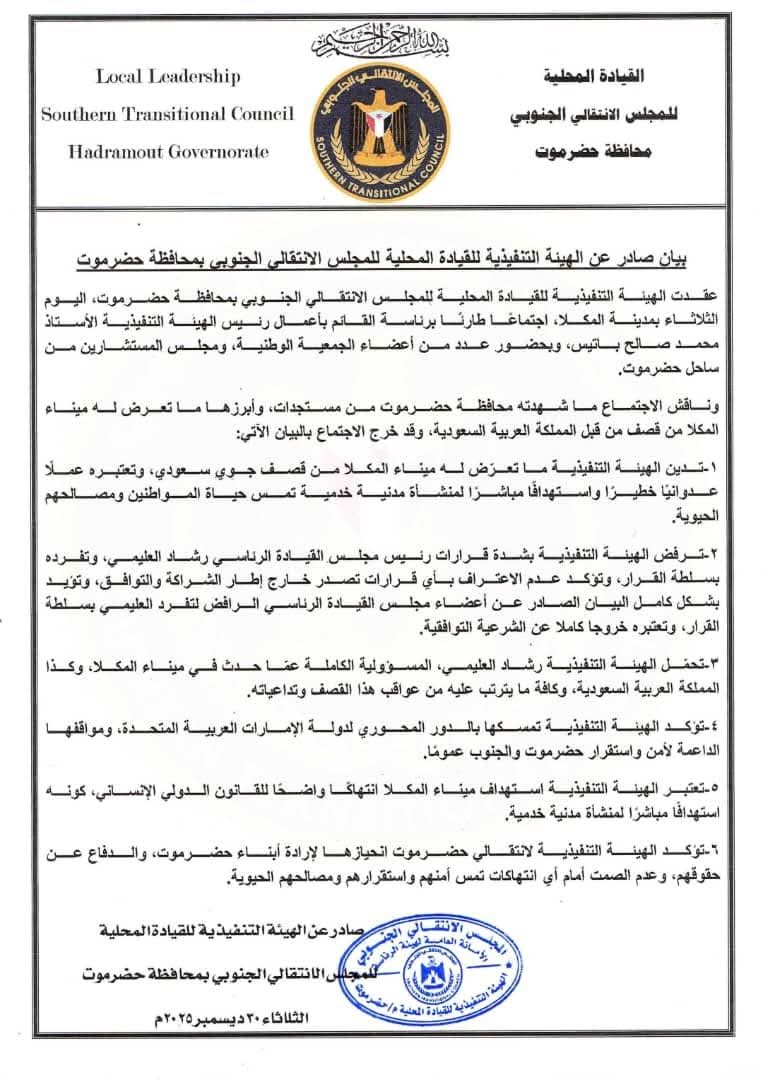 صوت عدن/ إعلام الوزارة:تفاجأت وزارة النقل بالعاصمة عدن، في هذا اليوم الثلاثاء، الموافق ٣٠ ديسمبر ٢٠٢٥م، بضربة جوية موجهة نفذتها قوات التحالف الجوية على ميناء المكلا التجاري في محافظة حضرموت، مما أدى إ ...