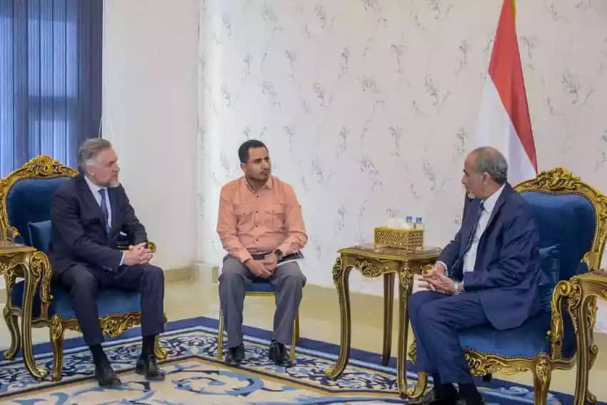 صوت عدن/ سبأ:استقبل رئيس مجلس الوزراء وزير الخارجية وشؤون المغتربين، الدكتور شائع محسن الزنداني، اليوم، في العاصمة المؤقتة عدن، سفير الاتحاد الأوروبي لدى اليمن باتريك سيمونيه والوفد المرافق له، حيث ج ...