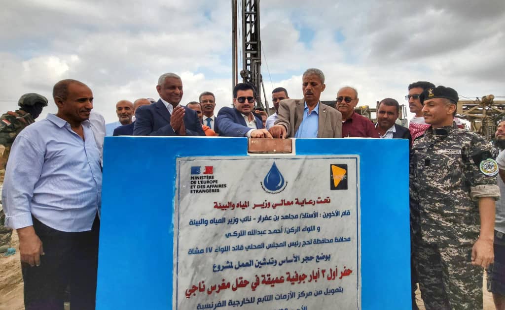 صوت عدن/لحج / خاص:وضع نائب وزير المياه والبيئة مجاهد بن عفرار، ومحافظ محافظة لحج اللواء أحمد التركي، اليوم بمحافظة لحج، حجر الأساس وتدشين العمل بمشروع حفر ثلاثة آبار مياه عميقة في حقل مغرس ناجي، إلى ج ...