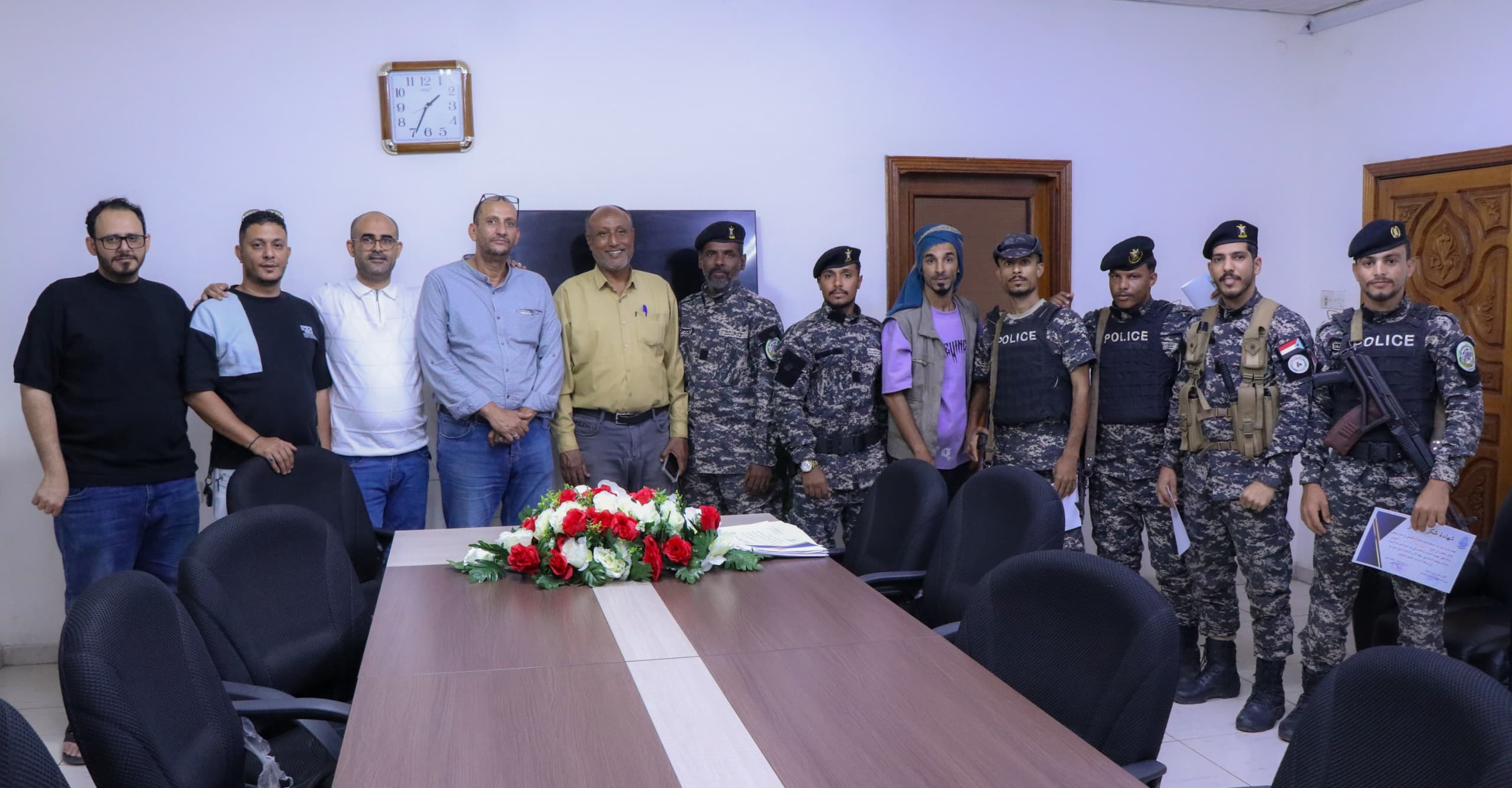 صوت عدن/إعلام المؤسسة:كرمت قيادة المؤسسة المحلية للمياه والصرف الصحي بمحافظة عدن ممثلة بالمهندس محمد باخبيرة اليوم الخميس أفراد قوات حرس المنشآت بشهادات تقديربة نظير جهودهم في تأمين مبنى المؤسسة وحماي ...