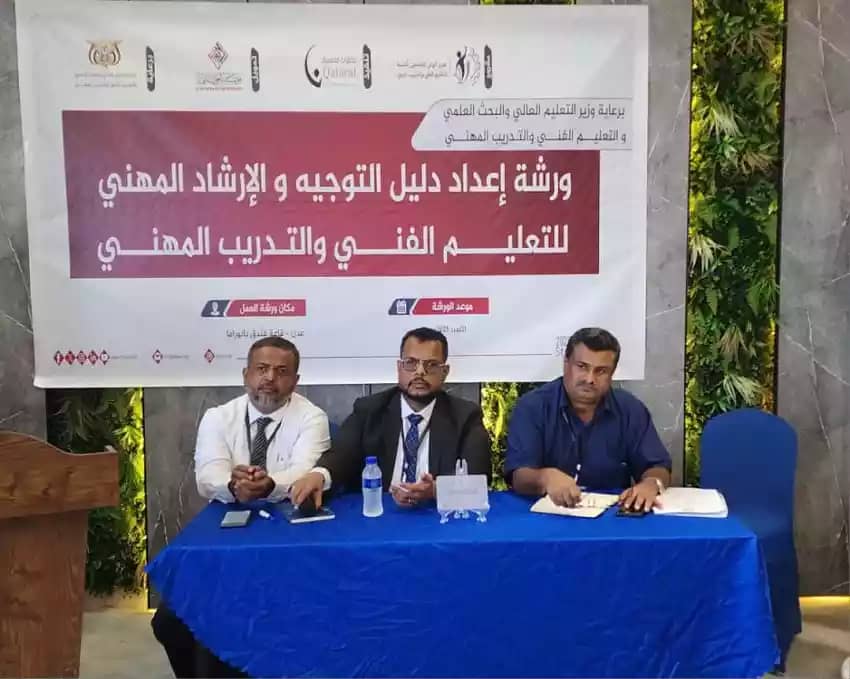 صوت عدن / خاص : عقد اليوم في العاصمة المؤقتة عدن فعالية ورشة العمل الخاصة بإعداد دليل التوجيه والإرشاد المهني للتعليم الفني والتدريب المهني التي تنفذها مؤسسة قطرات للتنمية بتمويل من مؤسسة العون للتنم ...