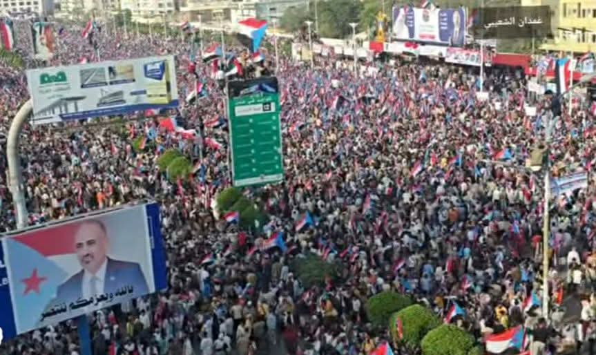 الآلاف من أبناء الجنوب يواصلون التوافد إلى ساحة ساحة العروض بالعاصمة عدن للمشاركة في مليونية "الثبات والتصعيد الشعبي"
