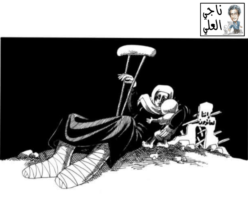 بريشة الميت الحي رسام الكاريكاتير الفلسطيني ناجي العلي الذي سقط شهيداً في لندن عام 1987 بعد مسيرة طويلة من العطاء والكفاح بقلمه لإعلاء كلمة فلسطين والدفاع عن شعبها المظلوم. من أرشيف cartoon home net ...