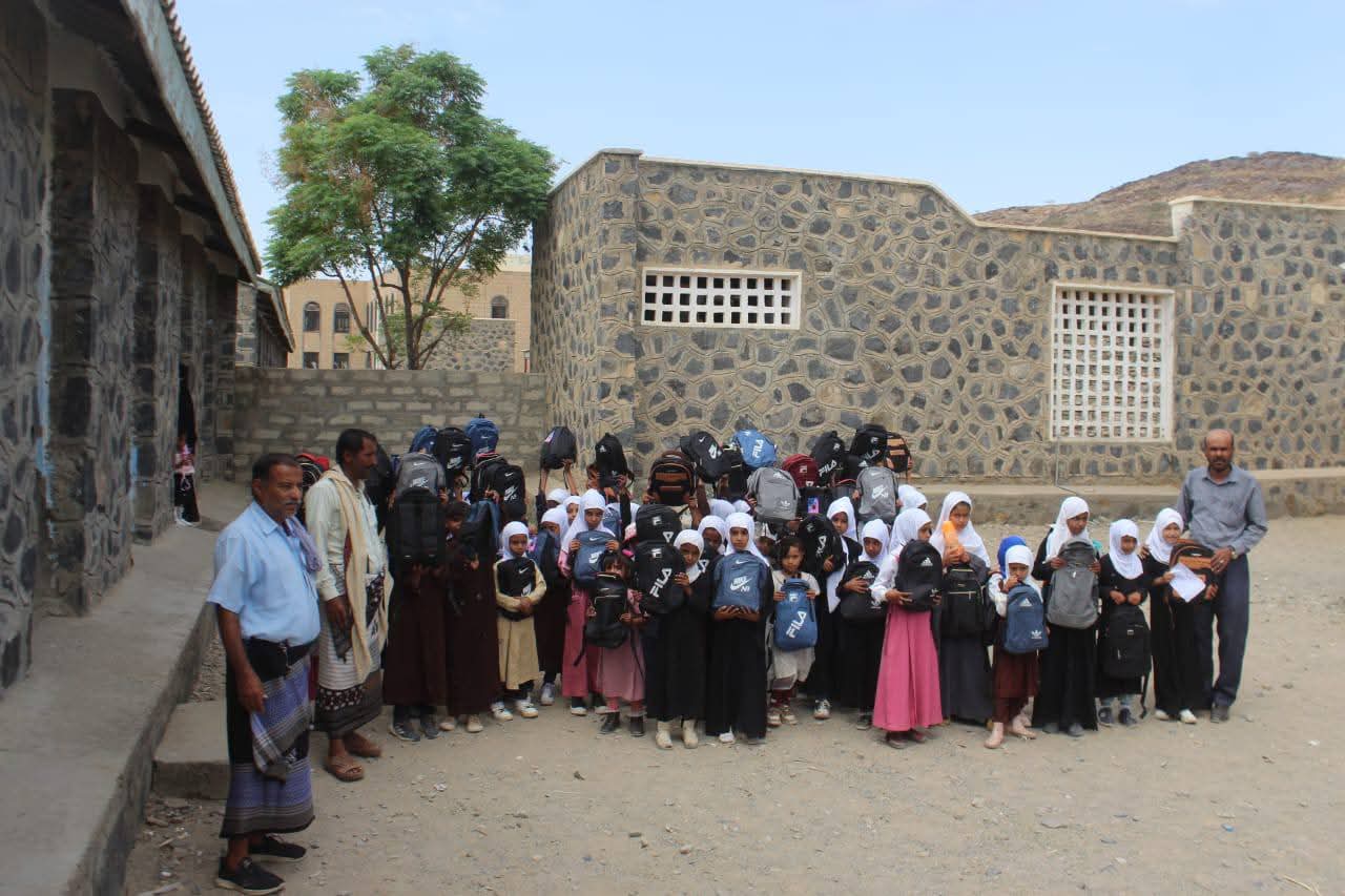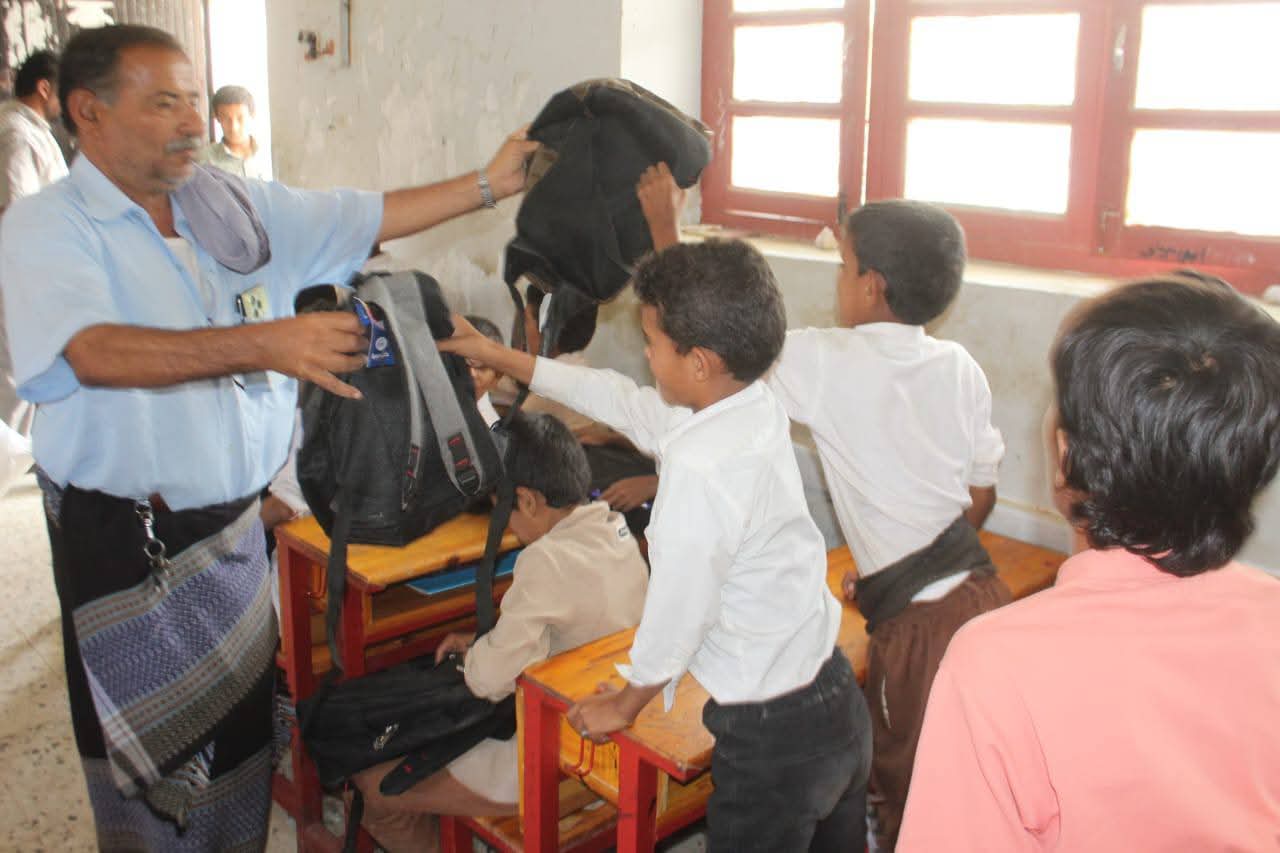 بدعم الهلال الأحمر الإماراتي.. توزيع حقائب مدرسية في مديرية جيشان أبين