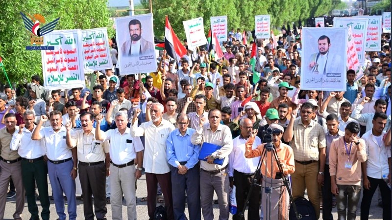مسيرة لطلاب ومنتسبي جامعة الحديدة ثباتًا مع غزة ورفضًا للمؤامرة الصهيوأمريكية
