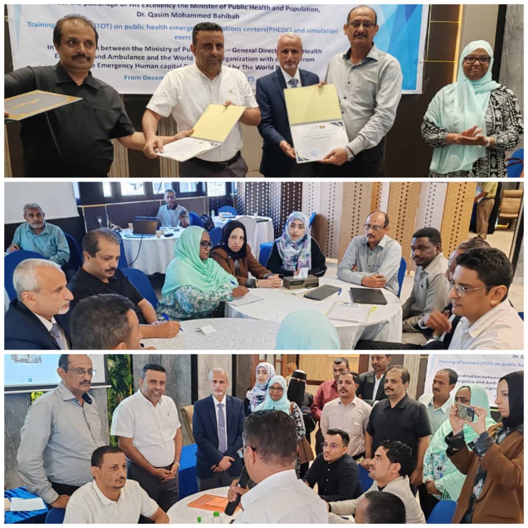 صوت عدن / نبيل عليوة :اختُتمت اليوم في العاصمة عدن فعاليات ورشة العمل المتخصصة في تدريب المدربين حول مراكز عمليات طوارئ الصحة العامة والتي نظمتها الإدارة العامة للطوارئ والإسعاف بوزارة الصحة العامة و ...