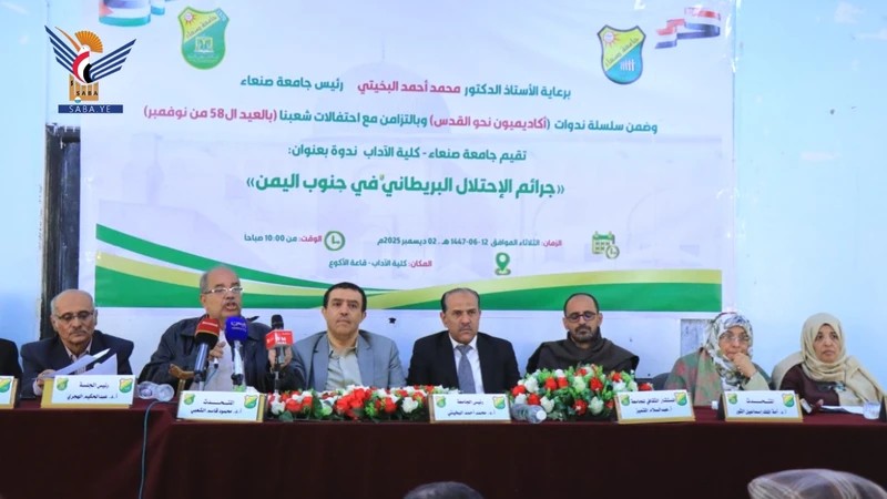 صوت عدن/صنعاء/سبأنت: نظمت جامعة صنعاء اليوم ندوة فكرية حول جرائم الاحتلال البريطاني جنوبي الوطن ضمن سلسلة ندوات "أكاديميون نحو القدس" وذلك بالتزامن مع عيد الاستقلال المجيد 30 نوفمبر.وفي الندوة أشار رئ ...