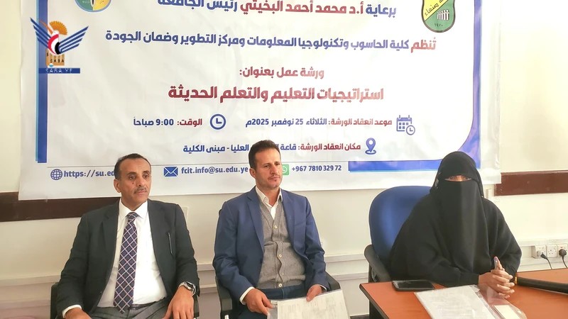 صوت عدن/صنعاء/سبأنت: عُقدت بجامعة صنعاء اليوم ورشة علمية بعنوان "استراتيجيات التعليم والتعلم الحديثة"، نظمتها كلية الحاسوب وتكنولوجيا المعلومات ومركز التطوير وضمان الجودة بالجامعة.هدفت الورشة إلى إكسا ...